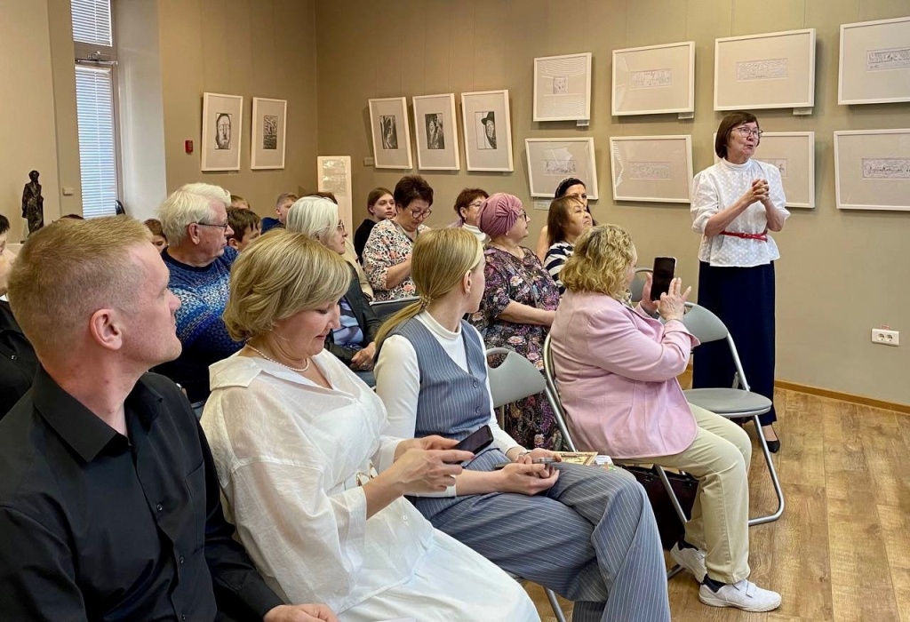 Куратор выставки Марина Иванова познакомила гостей с экспозицией, в центре которой представлен графический портрет А.С. Пушкина, выполненный Г.С. Райшевым в 2005 году.