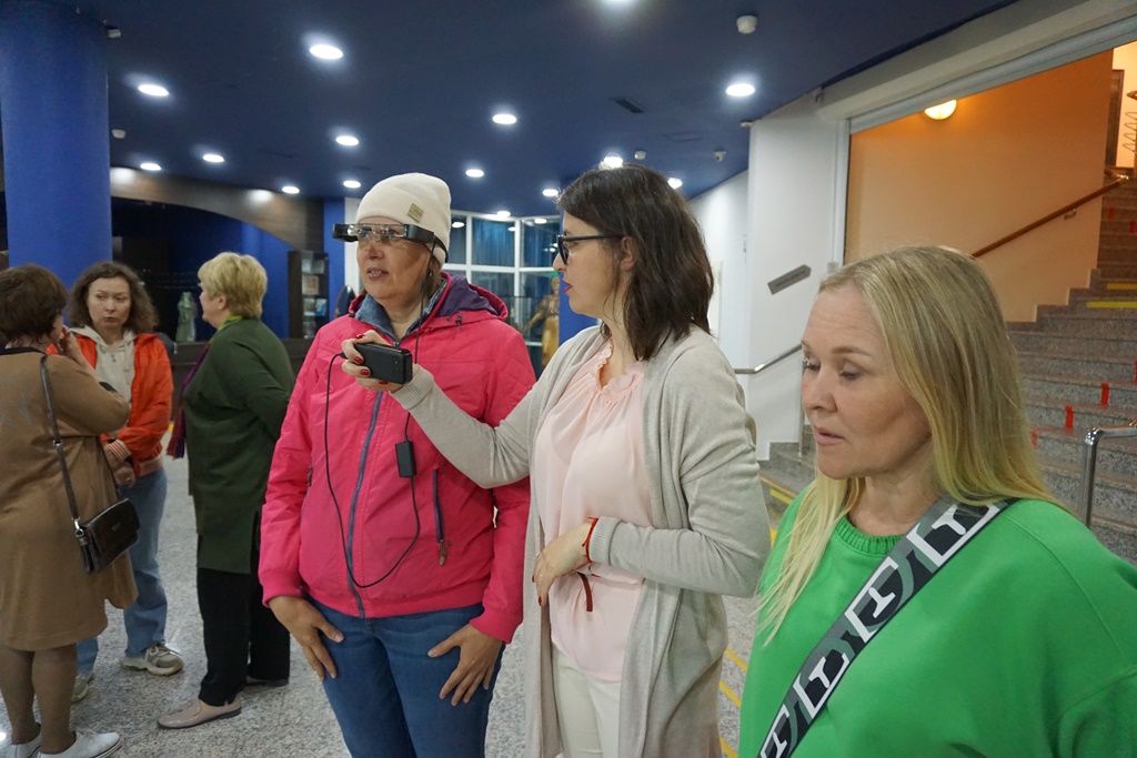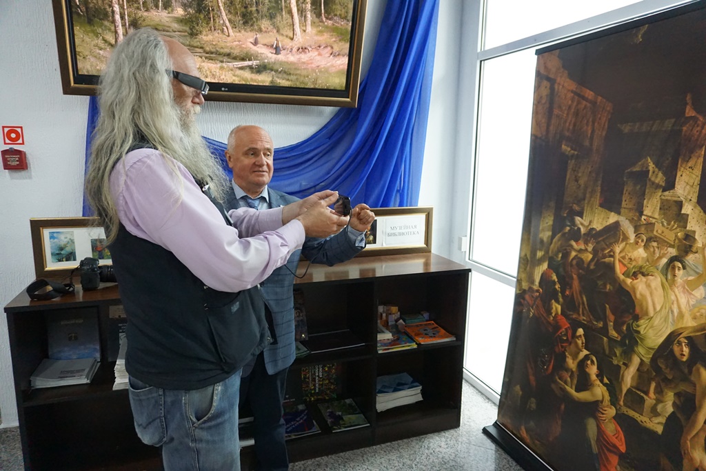 Далее всем желающим специалисты продемонстрировали новые возможности с помощью приложения для AR-очков «Последний день Помпеи». Прямо в фойе Государственного художественного музея в формате дополненной реальности можно «зайти» в знаменитую картину Карла Брюллова и стать свидетелем изображенного на ней события.