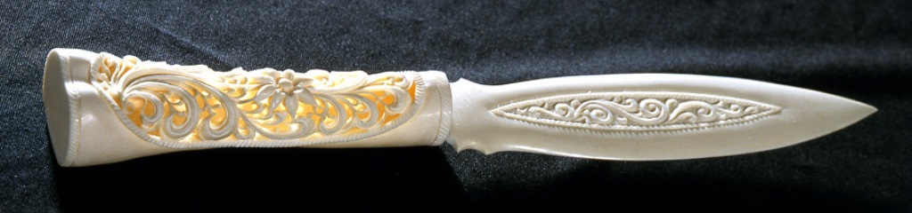 В нашем собрании также есть произведения сыновей Геннадия Фёдоровича – Алексея и Владимира: это резной гребень и нож для разрезания бумаги. Как можно увидеть, продолжатели династии виртуозно владеют техникой резьбы по кости. Искусство семьи Осиповых, лежащее в русле традиционного промысла, столь ярко и выразительно, что может представлять лицо древнего и одновременно современного искусства холмогорской резьбы по кости.