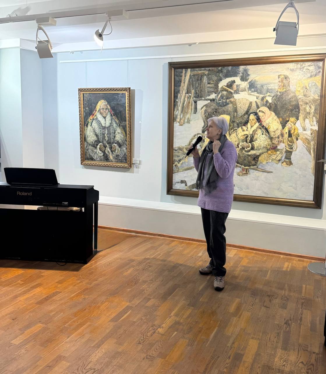 В унисон живописным полотнам Мастера в пространстве экспозиции прозвучали виртуозные импровизации в исполнении солиста Концертного оркестра Югры Алексея Коржова, а также вокально-инструментальная композиция «Морошка» на музыку Елены Кожуховской в исполнении артистки Концертно-театрального центра «Югра-Классик» Софьи Шесталовой.
