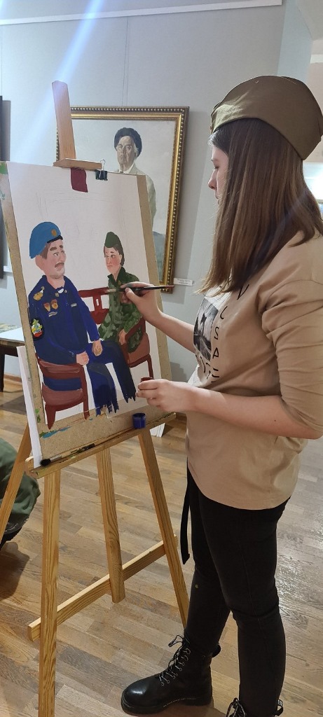 В этом году участники встречи - члены Региональной общественной организации Ханты-Мансийского автономного округа – Югры «Союз ветеранов боевых действий» терпеливо позировали юным художникам, которые с волнением создавали их портреты.