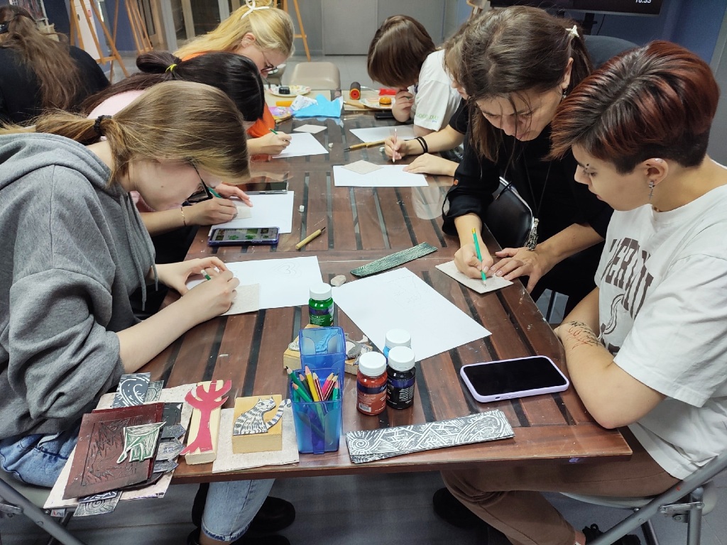 24 студента творческих специальностей и 26 учащихся школы креативных индустрий Ханты-Мансийска приняли участие в графических мастер-классах «Мастерская художника-графика», которые состоялись в галерее-мастерской с 9 по 12 октября. Участники мастер-классов познакомились с графическими техниками, в которых работал Геннадий Райшев, и, используя профессиональные инструменты художника-графика, создали авторские оттиски в технике линогравюры.
