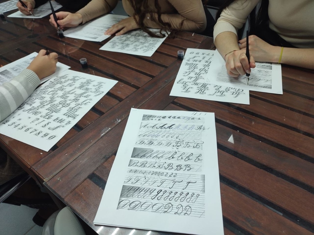 17 октября творческая молодежь осваивала искусство каллиграфии. Участниками уникального мастер-класса стали 25 студентов Югорского государственного университета: ребята познакомились с историей техники, освоили базовые каллиграфические приемы и создали авторские шрифтовые композиции на собственноручно сделанной бумаге.