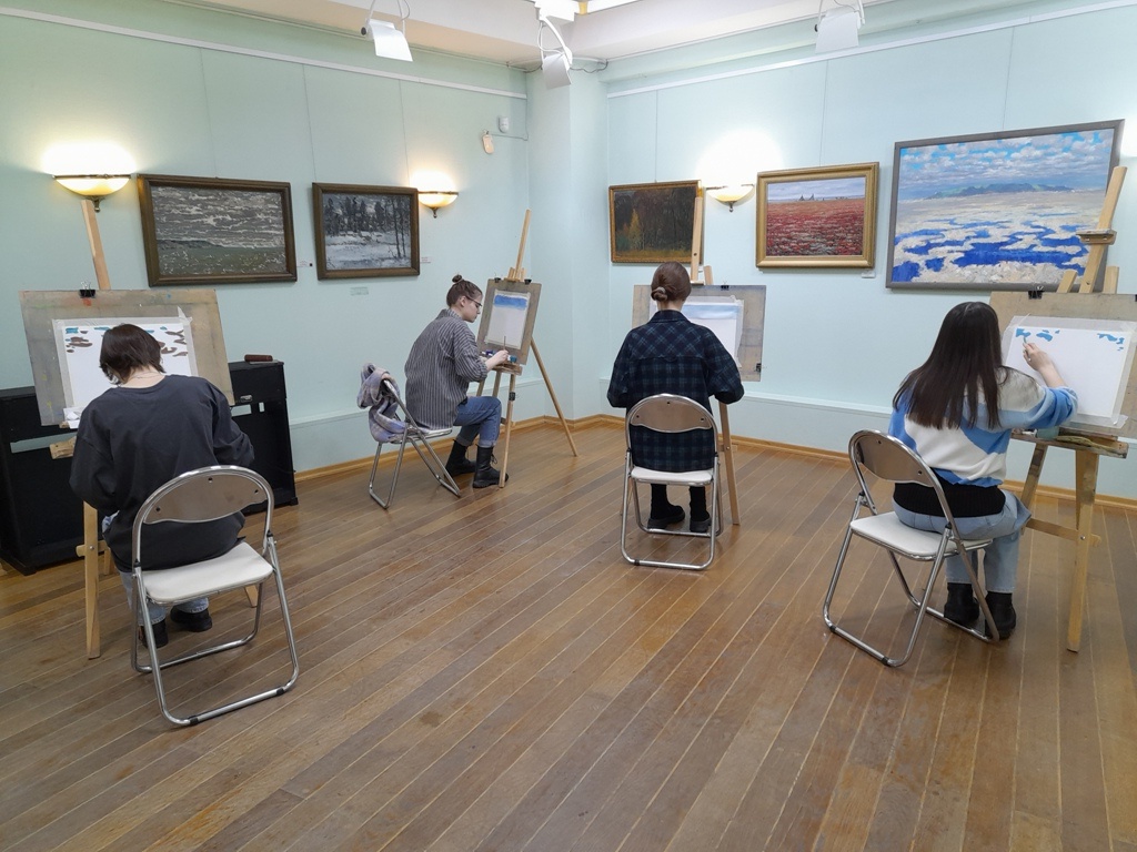 Весь февраль в музей приходили творческие люди разных возрастов – дети, подростки, взрослые, пенсионеры. Целью их визитов, помимо знакомства с экспонатами музея, было желание попробовать свои силы в копировании картин выставки «Времена года».