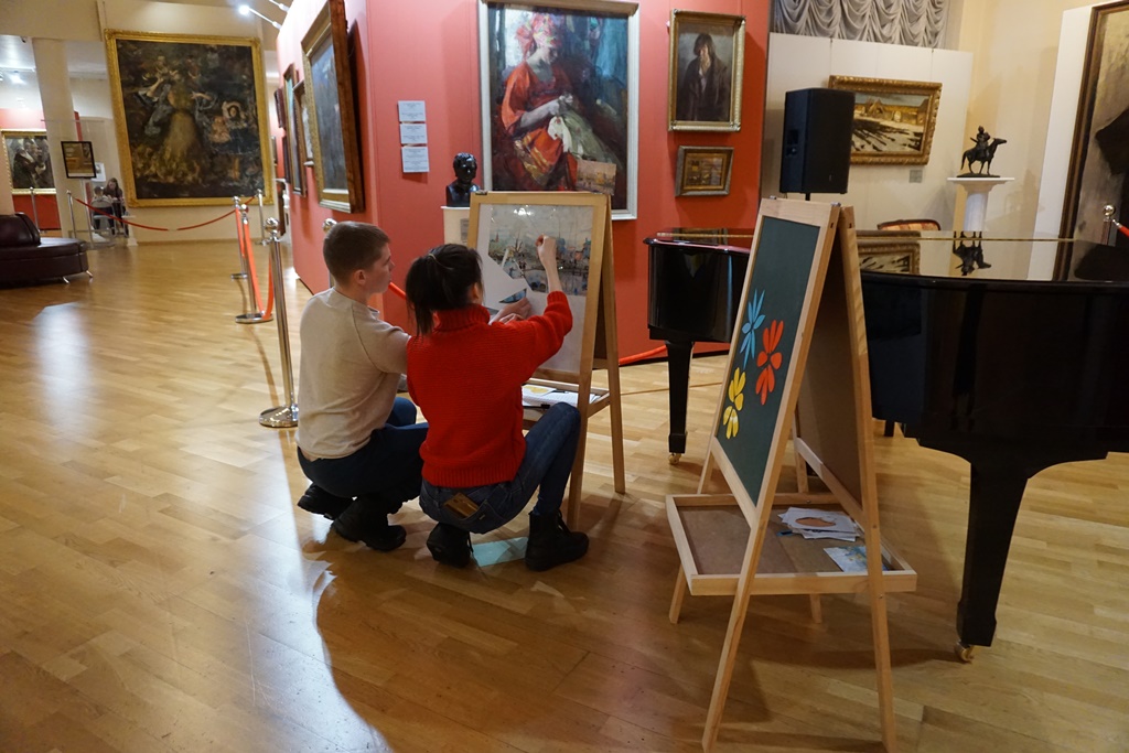 Родители с увлечением прошли квест «Загадки искусства», а малыши с удовольствием поиграли на детской площадке и порисовали песком.