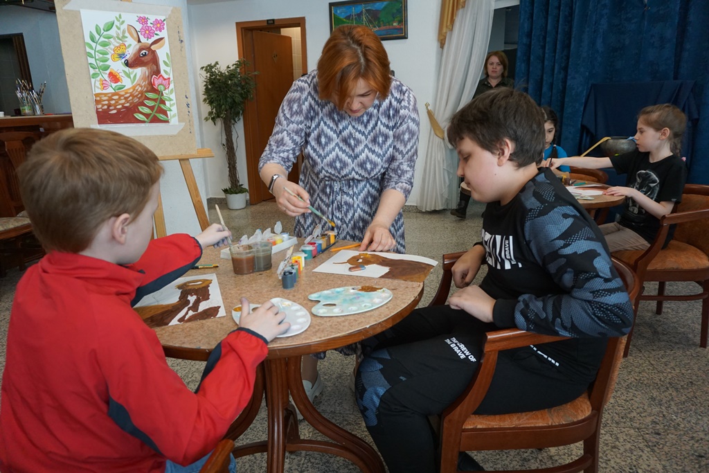Основу программы составили разнообразные мастер-классы: посетители мероприятия украсили маску-солнышко, нарисовали гуашью лесного оленя и в преддверии Пасхи изготовили нарядную подставку для яйца с весенними цветами.
