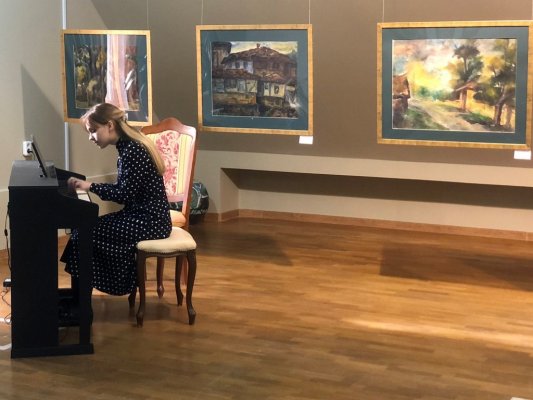 Произведения, представленные на выставке, прекрасно сочетались с музыкой великих классиков. Педагоги и студенты Центра искусств для одарённых детей Севера исполнили Шуберта, Равеля и Ганна.