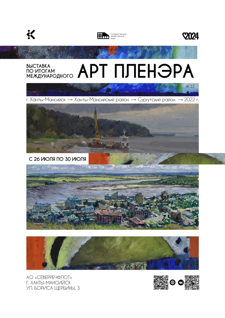 26 июля Государственный художественный музей на площадке АО «Северречфлот» представит выставку по итогам Международного арт-пленэра (г. Ханты-Мансийск, Ханты-Мансийский район, Сургутский район, 2022 г.).
