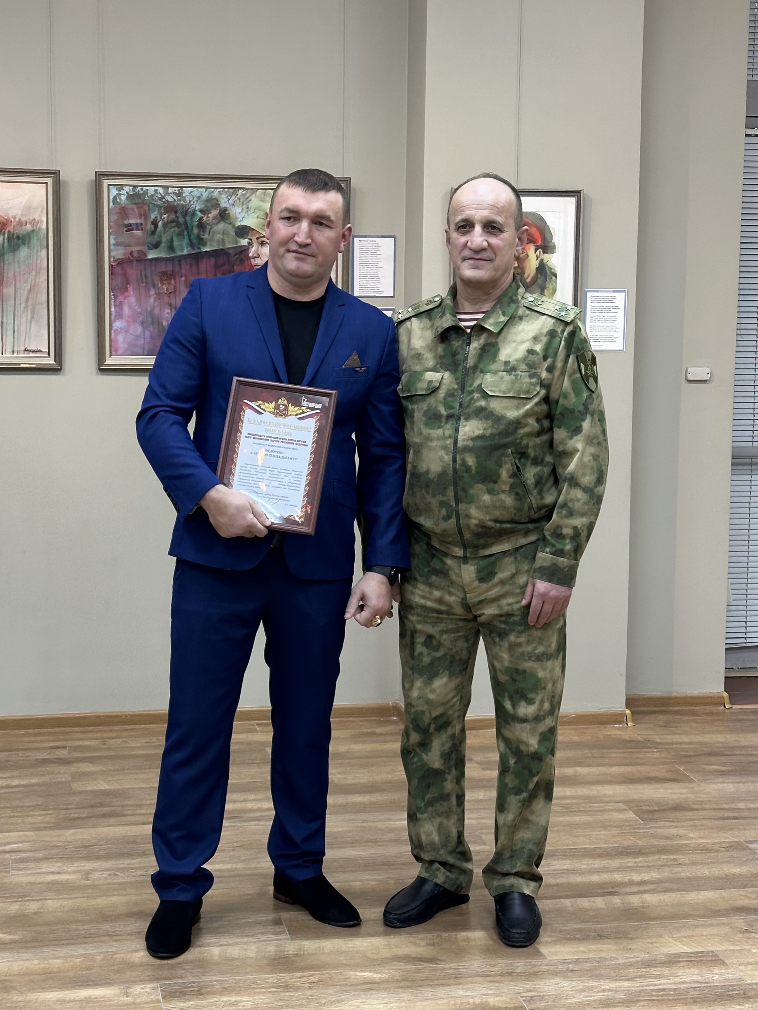 Особую значимость мероприятию придало присутствие почетных гостей. Заместитель командующего Уральским округом войск национальной гвардии Российской Федерации по военно-политической работе, полковник Лом-Али Дааев вручил благодарственные письма организаторам и партнерам выставки, отметив важность такой моральной поддержки для военнослужащих и их семей. Награды получили Юлия Виноградова, Денис Ульянов, а также представители ветеранских и патриотических общественных организаций.