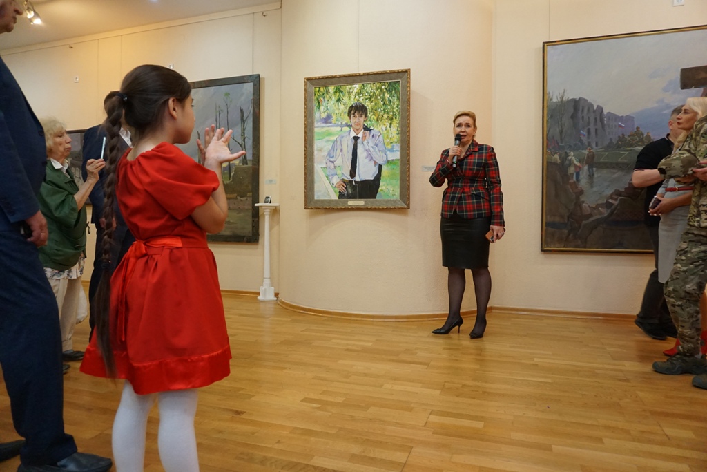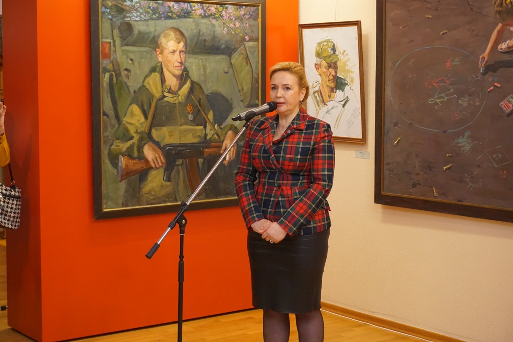 В Ханты-Мансийске впервые выставлены произведения известных российских художников: А. Крюкова, М. Фаюстова и Т. Пономаренко-Левераш. Алексей Крюков и Максим Фаюстов представляют Московский Союз художников, Татьяна Пономаренко-Левераш – член Союз художников России, член Международной ассоциации изобразительных искусств АИАП ЮНЕСКО, сопредседатель Донецкого регионального отделения Общероссийского общественного движения «Культурный Фронт России», руководитель творческого объединения «Летописец Донбасса». Слова приветствия Татьяны Витальевны открыли выставку. Художник эмоционально рассказала историю противостояния народа Донбасса, которая и нашла отражение в работах художников – глубоком эмоциональном свидетельстве трагедии и мужества.
